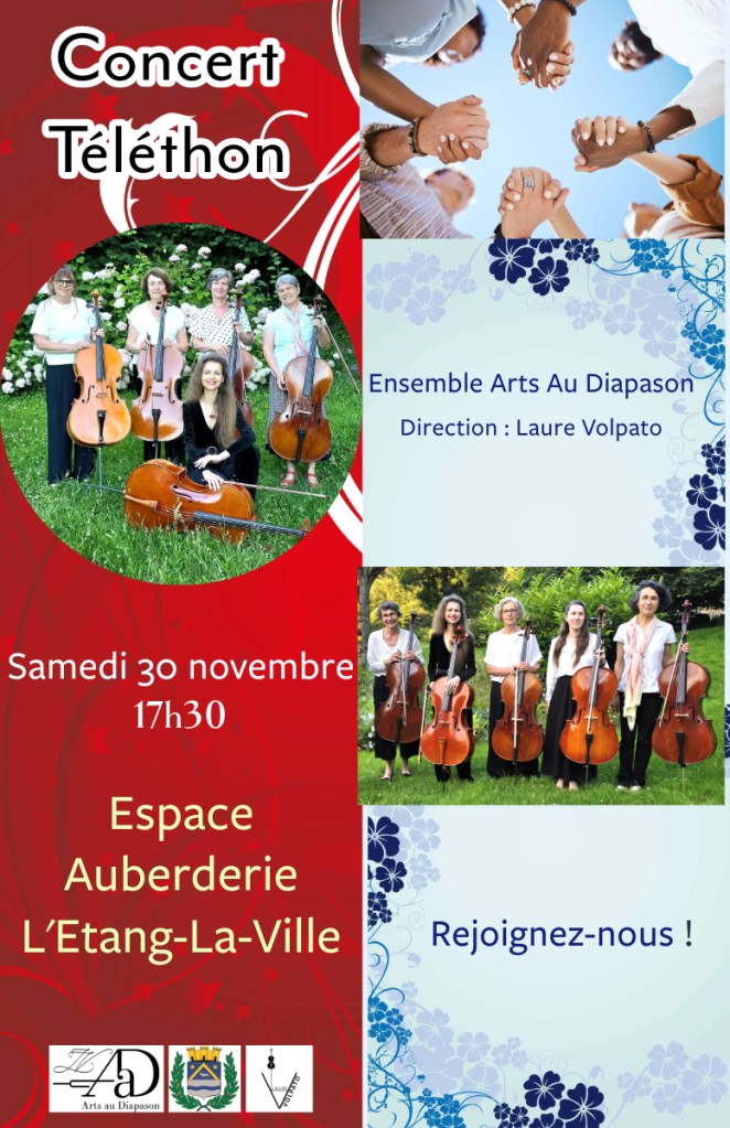 Le 30-11-24 Espace Auberderie (78) – Concert Téléthon Ensemble Arts Au Diapason Laure VOLPATO, violoncelle & direction