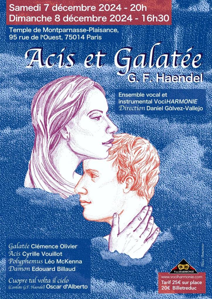 Le 08-12-24 Temple Plaisance, 16H30 (Paris 14ème) – Acis et Glatée de G. F. HAENDEL – Direction Daniel D. Galvez Vallejo