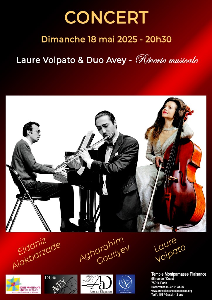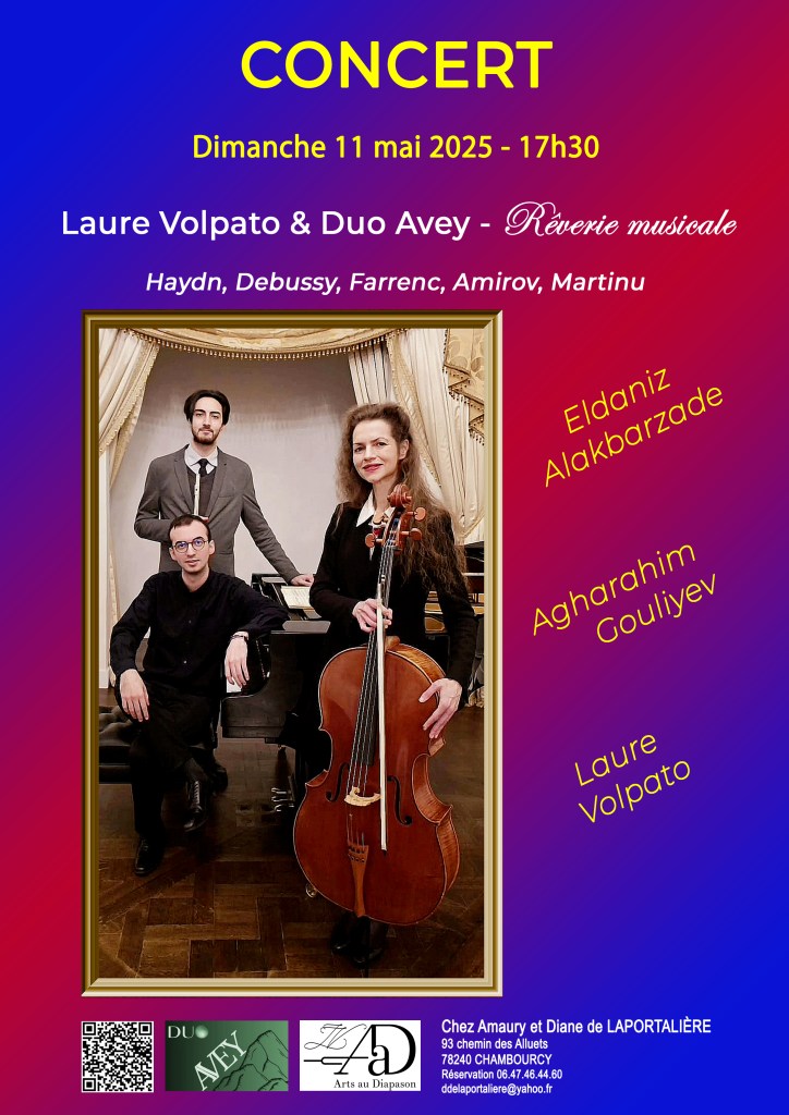 Le 11-05-25 – 18H30 – Domaine de Chambourcy (78) – Concert Laure VOLPATO, violoncelle, Agharahim GOULIYEV, flûte & Eldaniz ALAKBARZADE, piano