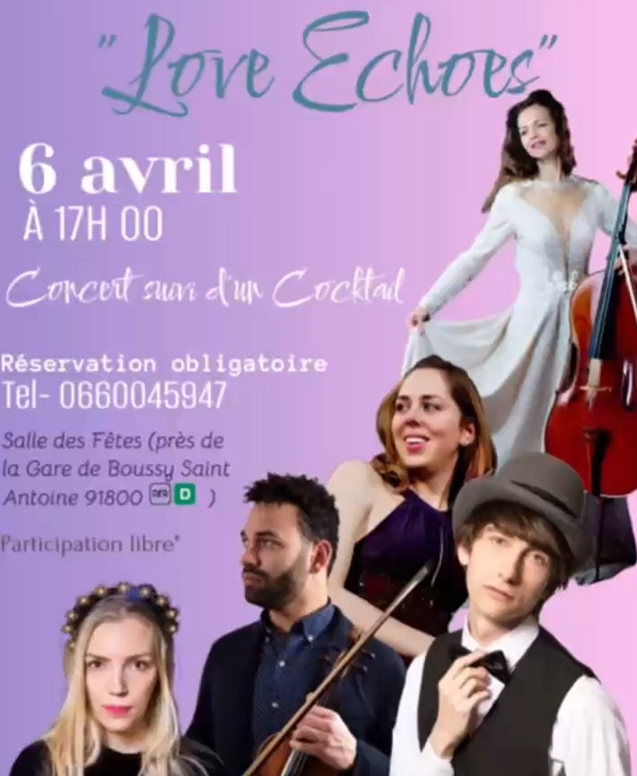 Le 03-05-25 – 18H – Espace Auberderie (78) – Ensemble International Love Echoes, Konstantin Lebedev (chant), Astrid Victoria Champeroux (chant), Laure Volpato (violoncelle), Kalie Akel (contrebasse), Xinchi Yang (percussions), Violetta Donini (piano)