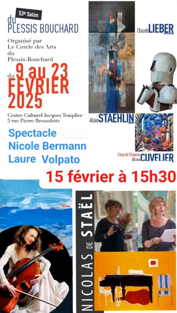 Le 15-02-25 Centre Culturel Jacques Templier (95) 15H30 – Lecture Musicale Lettres de Nicolas de Staël Nicole BERMANN, conteuse & Laure VOLPATO, violoncelle