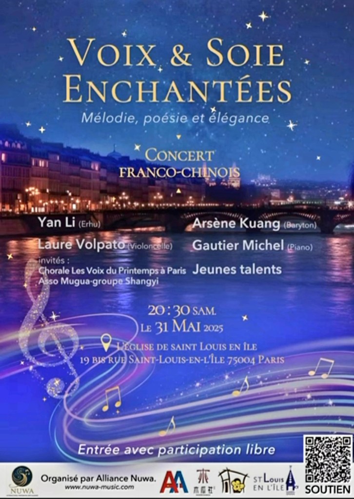 Le 31-05-25, 20H30 – Eglise de Saint Louis en île Paris 4 – Voix & Soie Enchantées. Concert Franco-Chinois