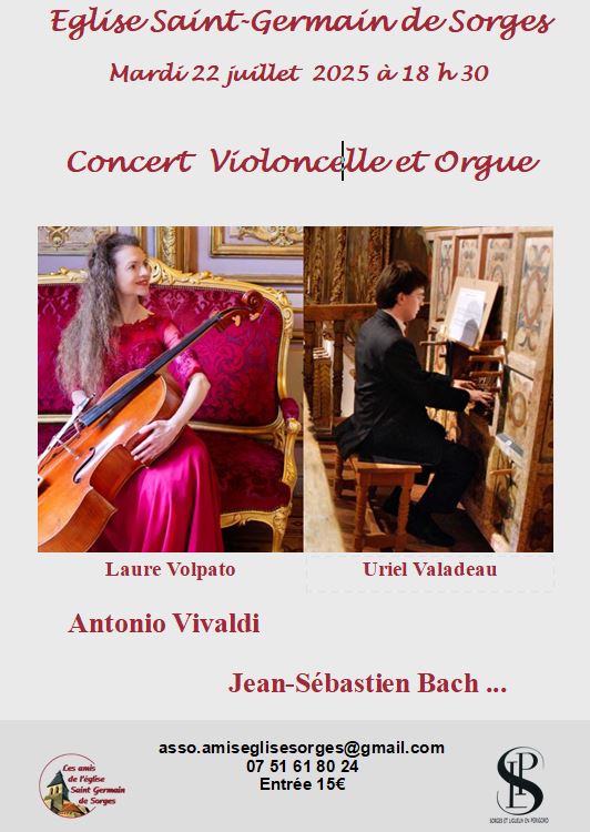 Le 22-07-25 Eglise de Sorges (24) – Concert Laure VOLPATO, violoncelle & Uriel VALADEAU, orgue