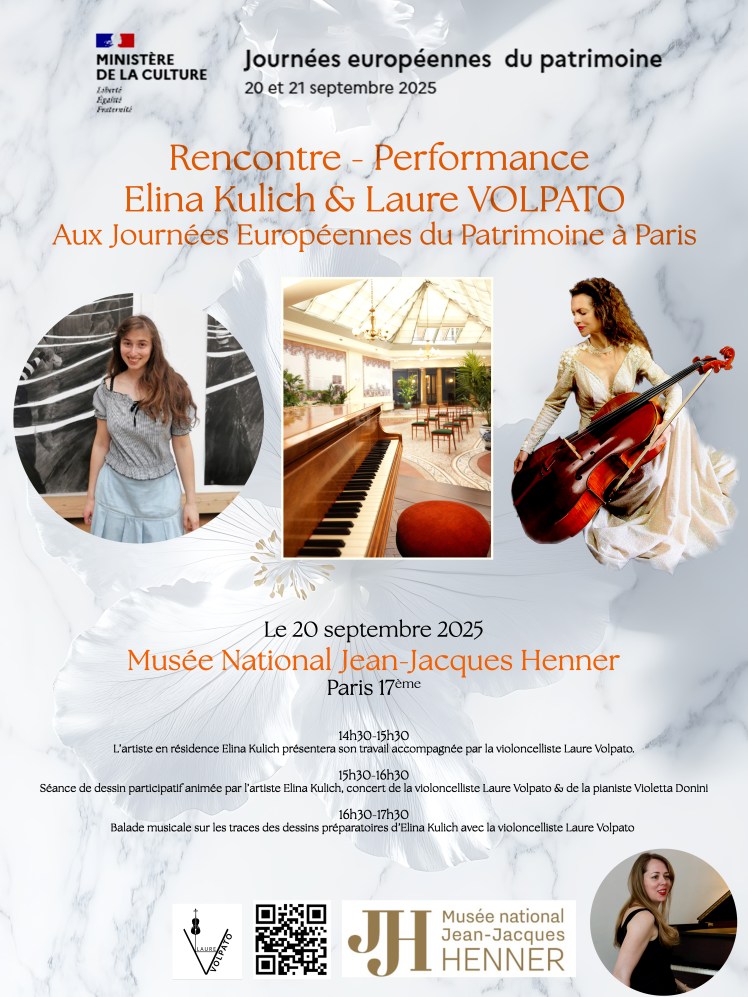Le 20-09-25, Musée National J.J. Henner à Paris 17ème, journées européennes du patrimoine, de 14H30 à 17H30, Laure Volpato violoncelle