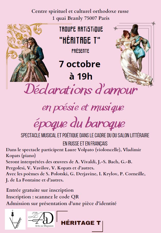 Le 07 -10- 25 – Centre Spirituel et Culturel Orthodoxe Russe, Paris 7ème – 19H , Concert, Olga Fedotova, soprano, Laure Volpato, violoncelle , Vladimir Kopats, piano
