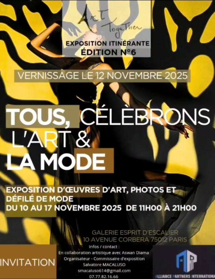 Le 15-11-25, Duo Shizuku – Vernissage 17h Gallerie l’Esprit d’Escalier, Paris 12ème. Avec le créateur de mode Salvatore Macaluso. Laure Volpato, violoncelle, Azusa Loringuez, piano