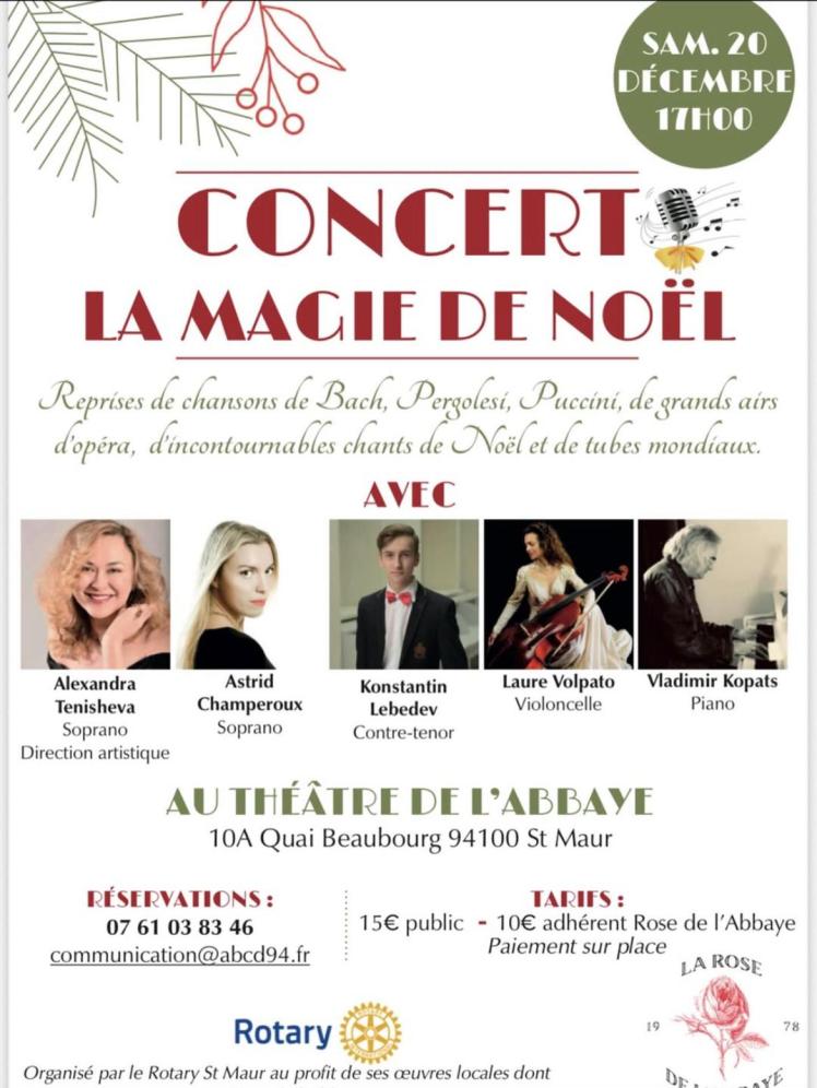 Le 20-12-25 – Saint-Maur-des-Fossés, 19H, Concert de Noël, Laure Volpato, violoncelle, Alexandre Tenisheva, chant, Konstantin Lebedev, chant, Vladimir Kopats, piano