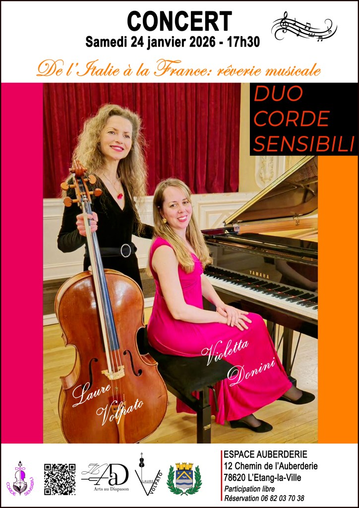 Le 24-01-26 – Espace Auberderie, L’Etang-La-Ville, Duo Corde Sensibili, Laure Volpato, violoncelle, Violetta Donini, piano