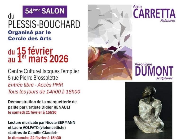 Le 22-02-26 à 15H30 – Centre Culturel Jacques Templier, Plessis-Bouchard, « Lettres de Camille Claudel », « Duo Parole & Musique « , Nicole Bermann, conteuse , Laure Volpato, violoncelle