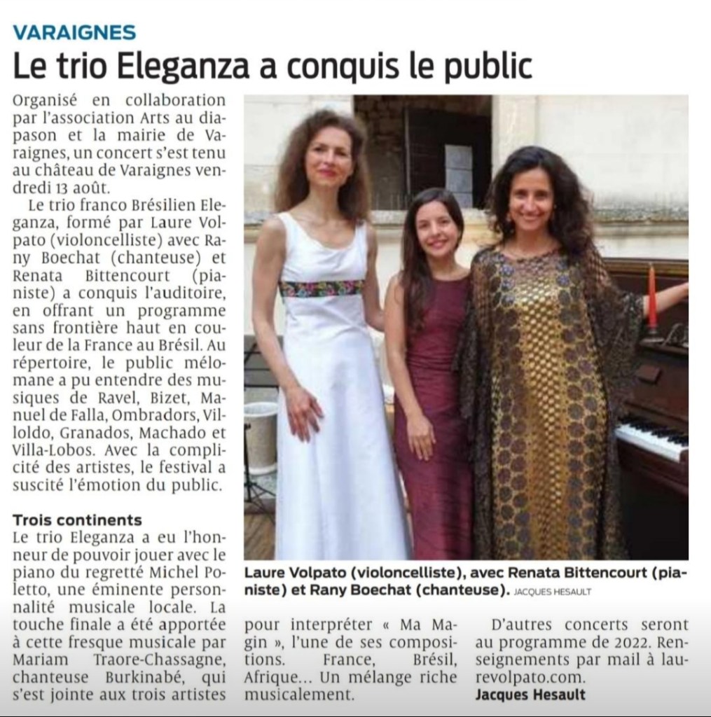 Laure Volpato, violoncelle, Rany Boechat, mezzo soprano & Renata Bittencourt, piano