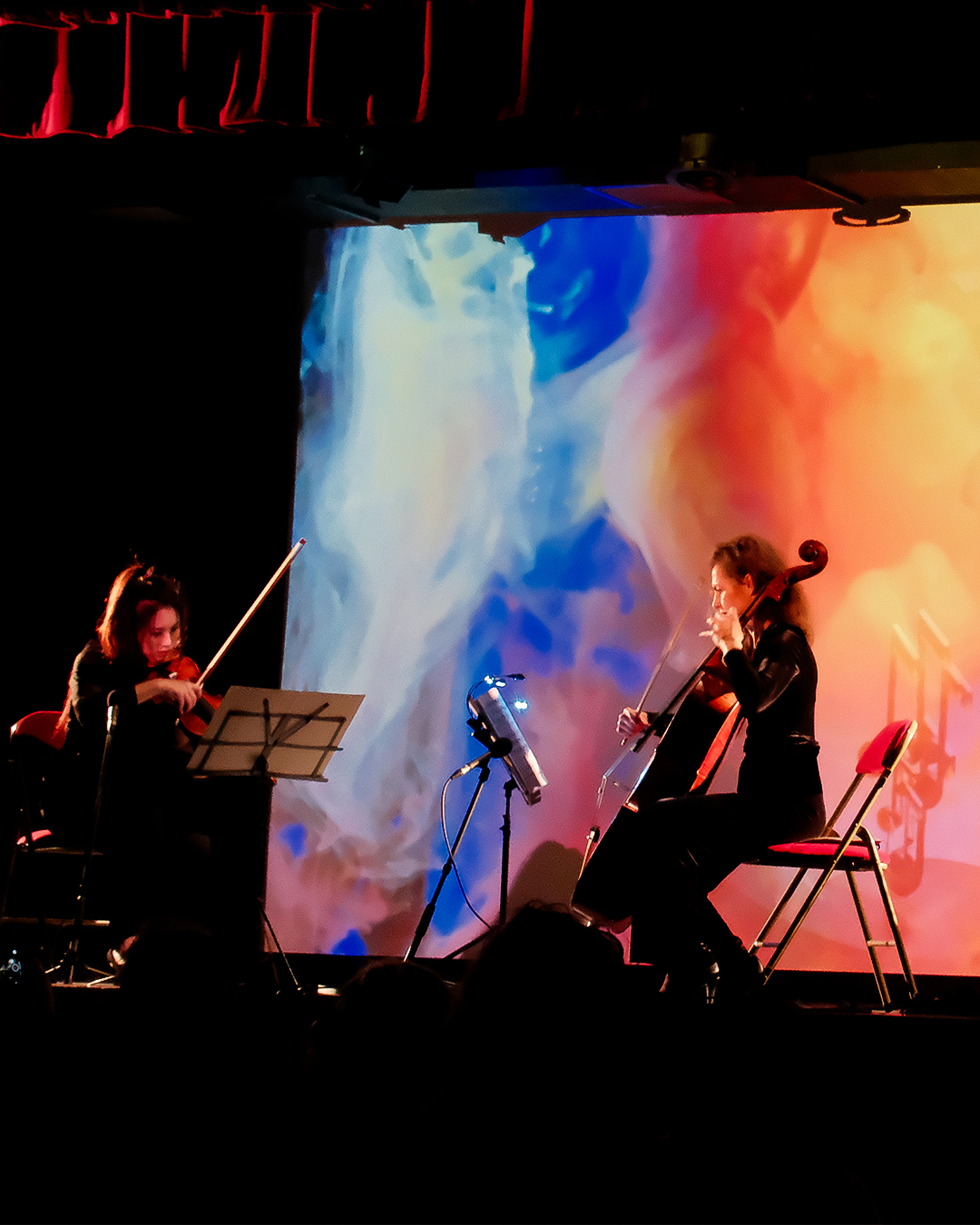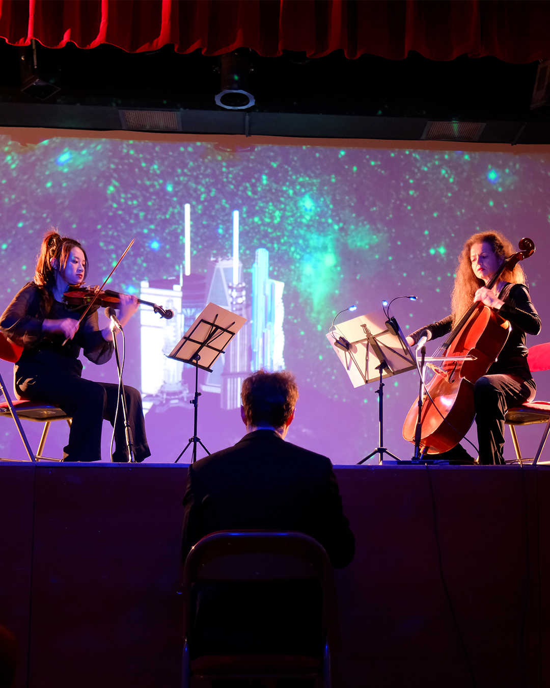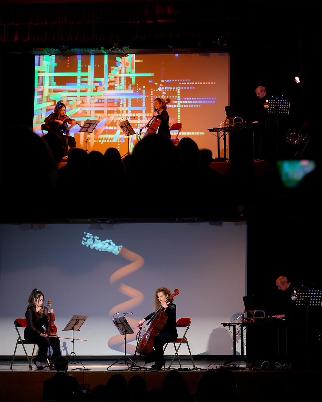 En 2022, la violoncelliste Laure Volpato et la violoniste Hsin Yu rejoignent le projet, ajoutant la puissance de leur sonorité au concept. De cette alchimie naît un show immersif en trois chapitres – de la naissance de l’univers au développement technologique, de la naissance de l’homme numérique jusqu’à son paroxysme… Ce voyage sensoriel interroge l’identité humaine, le rapport à la nature, la capacité de produire, de détruire, le retour à l’essentiel et la quête de sens dans un monde où il faut toujours performer 📈